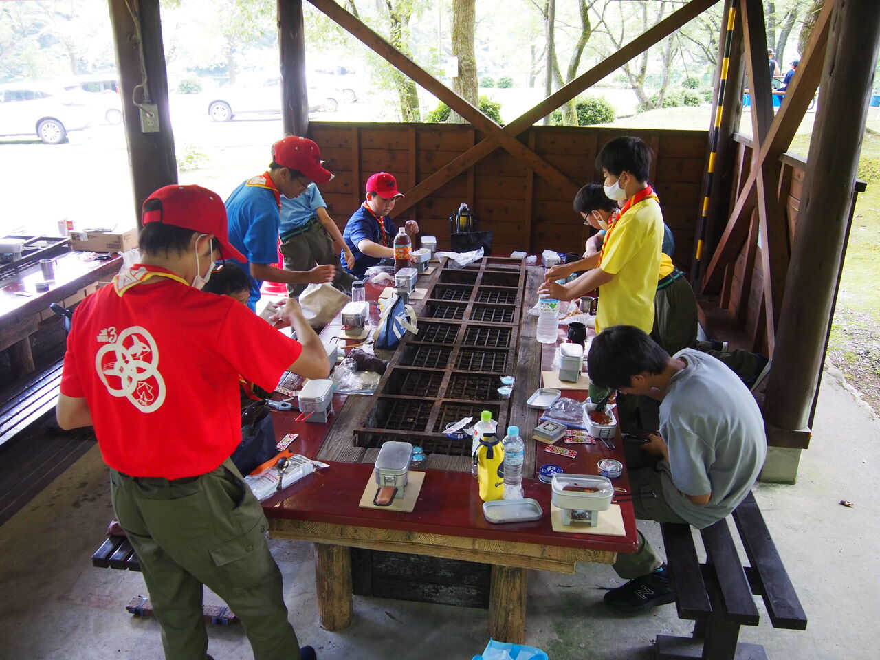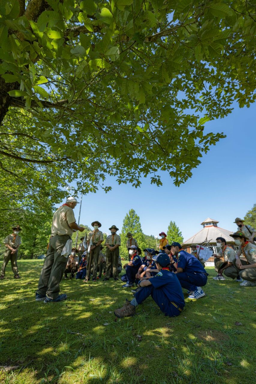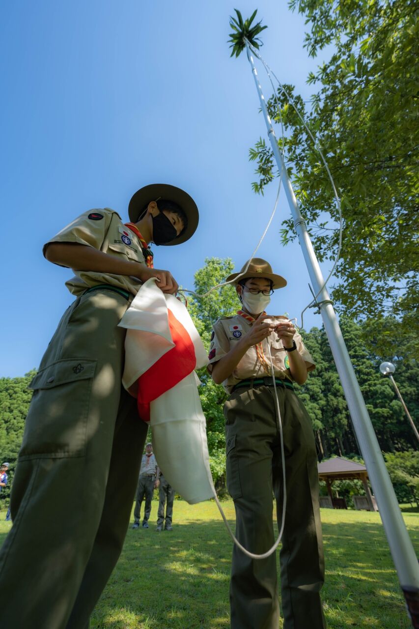 朝9時からカブ隊、ベンチャー隊とともに朝礼兼開会式。